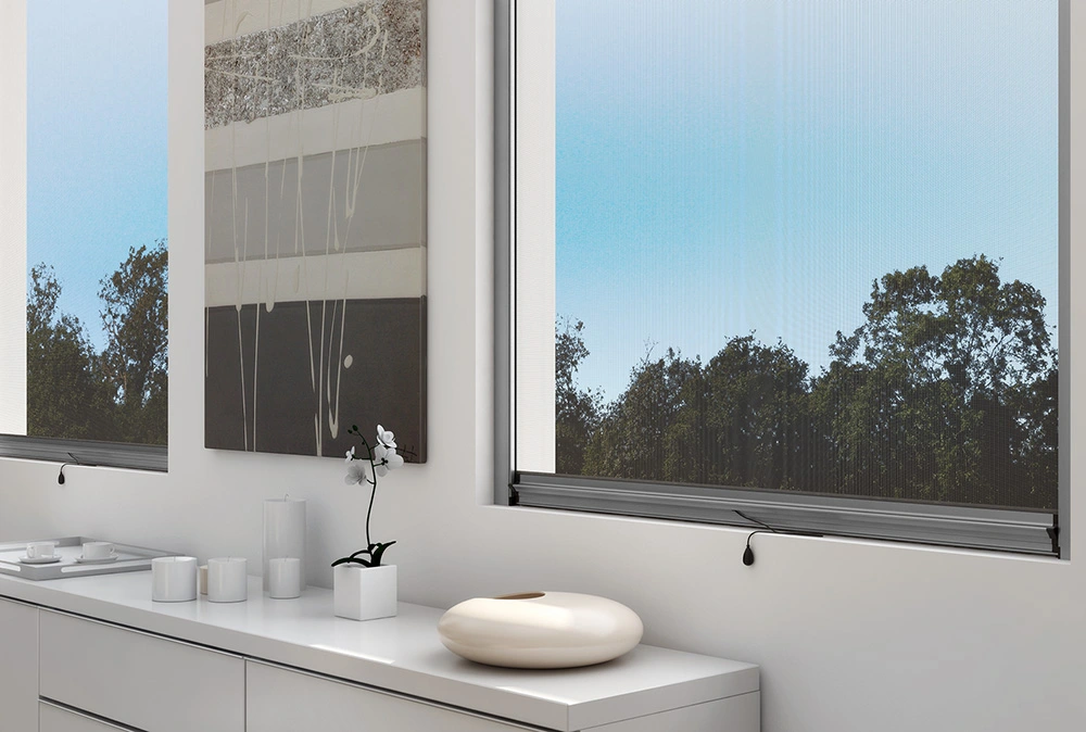 Al posto della rete si può richiedere l’inserimento di teli oscuranti, filtranti e a strisce. I teli oscuranti e filtranti sono per uso interno e vengono forniti senza bottoncini, da richiedere in fase d’ordine come opzione.